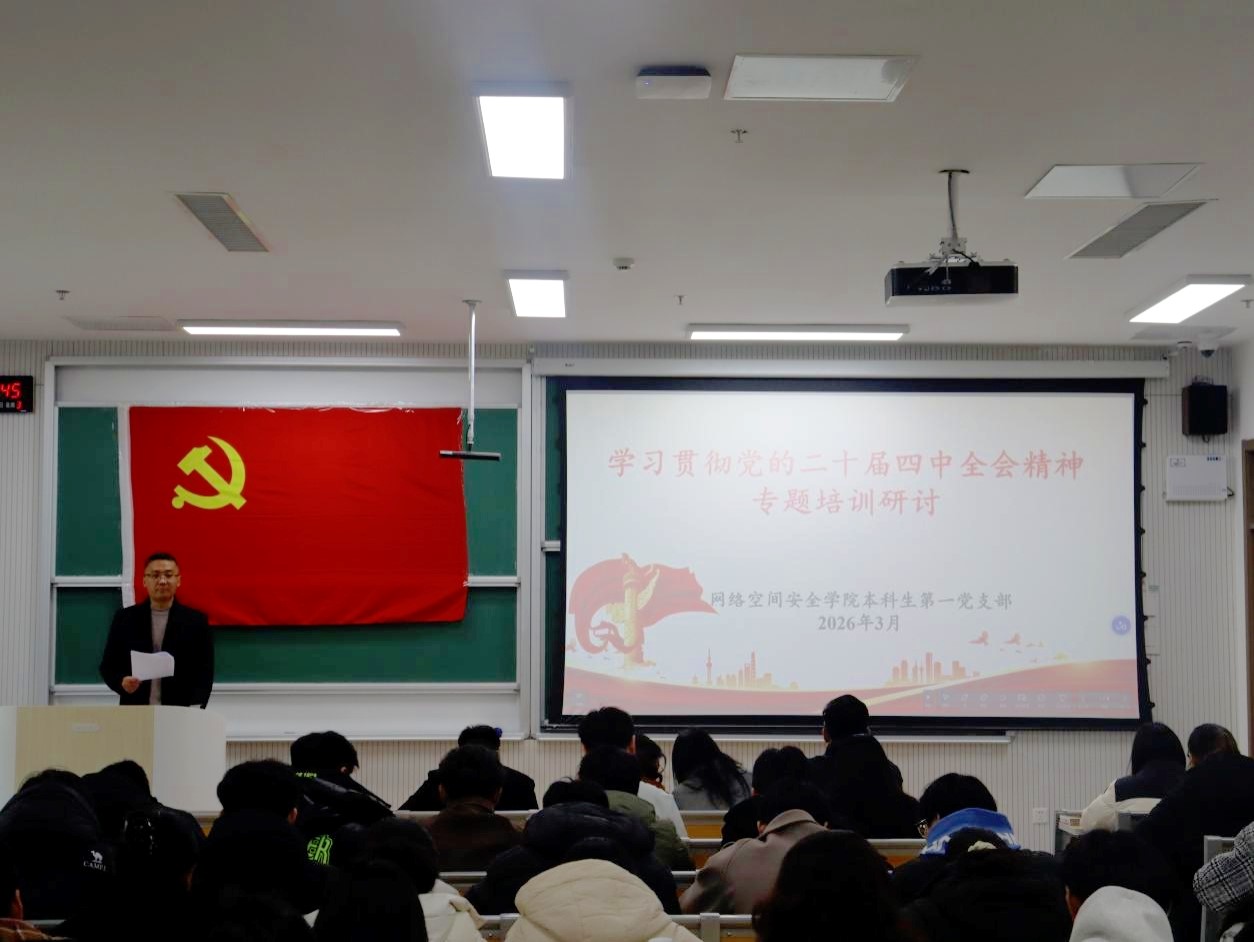 会议“第一议题”学习了习近平总书记在3月1日出版的第 5 期《求是》杂志发表的重要文章《让愿担当、敢担当、善担当蔚然成风》。在本科生第一党支部的培训研讨会议中,武玉龙带领全体党员观看学习了《学习贯彻党的二十届四中全会精神培训课程》。武玉龙强调,全体党员要认真领会党的二十届四中全会精神,要以此次学习为重要契机,切实把担当精神融入日常学习生活,在学业上争当表率,在服务同学中主动作为,在网络安全实践中锤炼过硬本领,以行动践行新时代党员的初心与使命。