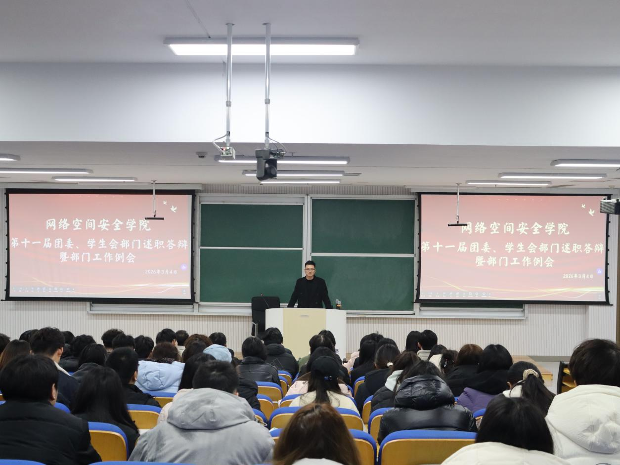 会议伊始,各部门部长依次围绕2025年度工作进行汇报,全面总结部门建设成果与重点工作成效,深入剖析现存问题,并针对性提出改进措施。各部门明确表示,2026年将在学院党委、团委的统一领导下,紧扣学院中心工作,持续开展形式多样、内涵丰富的校园活动,不断提升工作水平。最后,丁允念对过去一年各部门成员的辛勤付出给予充分肯定。他强调,要进一步强化理论与实践相结合,提升工作实效;加强各部门之间密切协作,并对下一阶段重点工作进行安排部署,为学生工作开展指明方向。