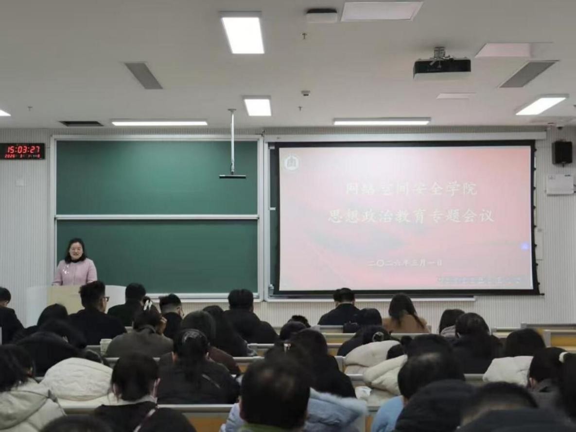 教职工思想政治教育专题会议于格物楼B107教室顺利举行。学院党委书记田云飞、院长王茂励、党委副书记范瑞红、副院长马旭及学院全体教职工参加会议。范瑞红主持本次会议。