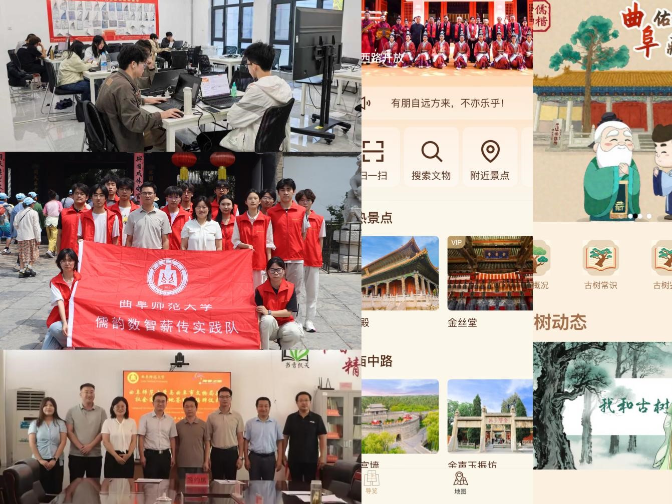 我带领学生走进曲阜三孔,将思政教育搬到千年古迹之间。借助学院的数字技术优势,指导学生用无人机航拍,采集孔庙中轴线建筑的纹路,捕捉千年古树的风骨,记录满汉合璧碑刻的意蕴,构建起兼具技术精度与文化深度的数字档案库。为推进数字化成果向思政场景转化,我与专业老师携手指导学生科创团队,研发出“夫子智旅”“儒楷新韵・曲阜古树”两款小程序,让传统文化以轻量化、互动化的形式触达更多人。组建“儒韵数智薪传”社会实践队与“文物变形记”志愿服务队,联合曲阜市文物局建立大学生社会实践基地,让学生在服务社会中传递文化温度。实现了文化遗产从静态保护到动态传承、从学术研究到社会服务、从文化传播到思政育人的多维突破,也为文化遗产数字化与高校思政教育融合,打造出可复制、可持续的“三孔样本”。