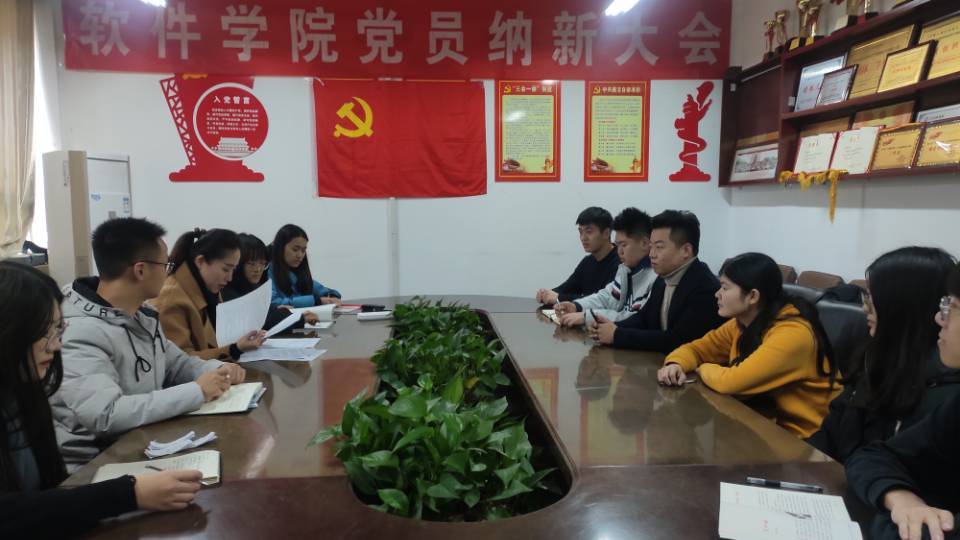 2019年12月9日下午三时许,软件学院研究生党支部召开党员纳新会议,本次会议由研究生党支部书记王抒同志主持,主要讨论贾惠、魏媛媛两名发展对象的情况,并讨论是否接受他们入党的问题。