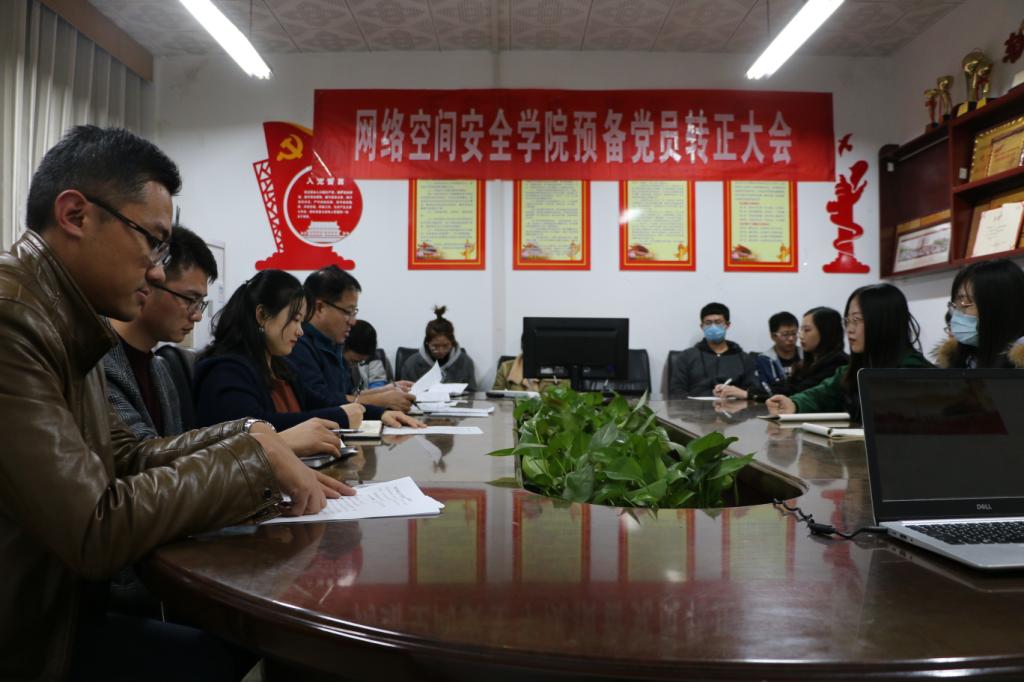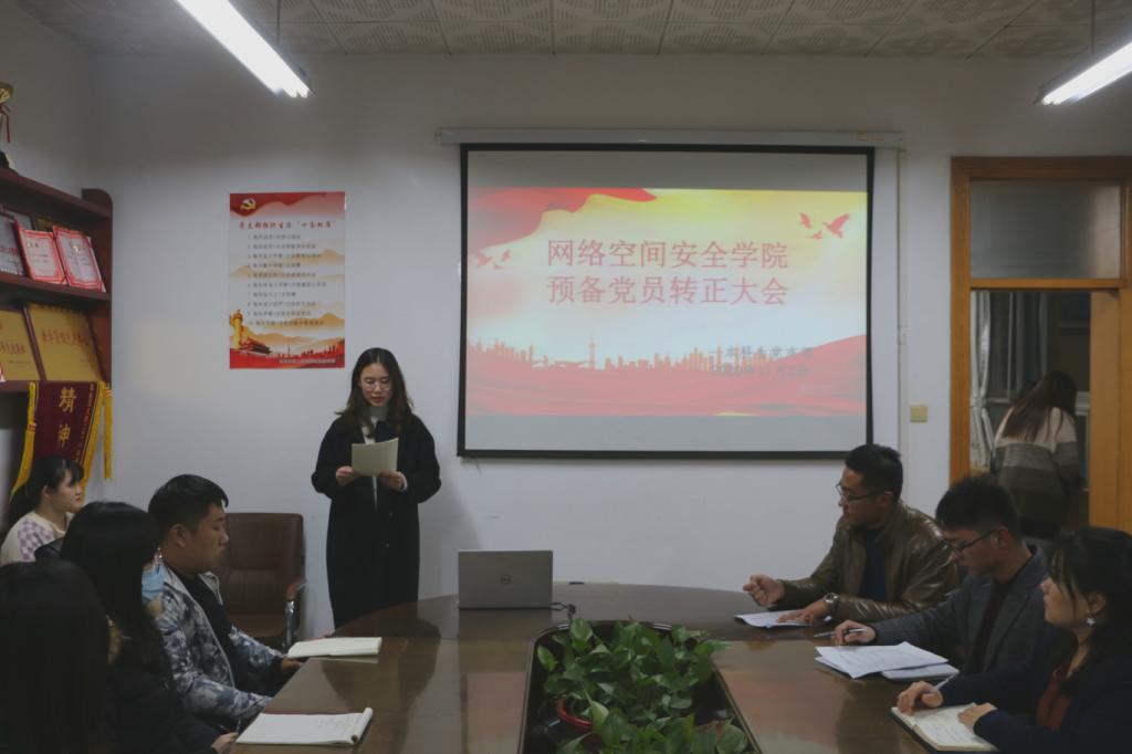 在高亢嘹亮的国际歌中开始。王天宇、李菡、刘佳璇3名预备党员,逐一上台宣读转正申请书并汇报了他们在一年的预备考察期间思想、工作、学习等方面的进步和自身存在的不足。入党介绍人对3名同志能否转正发表意见,与会党员对其能否转正进行充分讨论,到会有表决权的党员对3名预备党员能否定期转正进行无记名投票,经过大会严格审查,党员们一致表决同意以上3位预备党员按期转为正式党员。