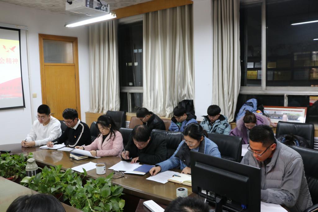 本科生党支部于12月3日在学院会议室举行主题党会,会议由本科生党支部书记田凯主持,武玉龙主讲,团委书记范瑞红、辅导员洪亚玲、丁允念及全体党员参加。