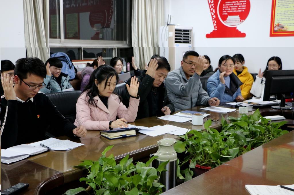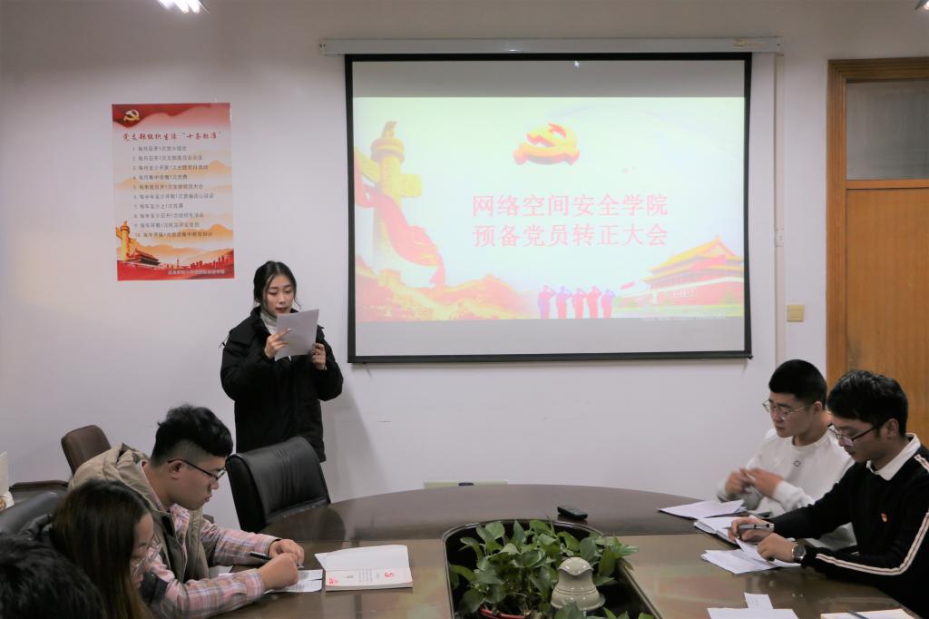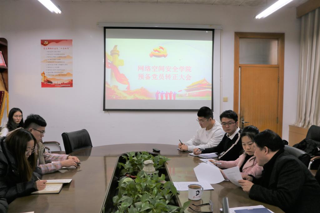 本次党员转正大会严格按照党章规定的讨论表决程序进行。8位预备党员同志首先汇报了预备期间的思想、工作情况。支部委员会介绍了张婉晴等8名同志预备期间的教育考察情况,对预备党员预备期内的表现情况做了全面客观的分析评价。与会党员在充分进行党内讨论后,逐一表决,一致同意接收以张婉晴等为代表的八名同志为中共党员。武玉龙老师对他们的思想、学习提出了更高的要求,希望他们能够不忘初心牢记使命,充分发挥党员模范先锋作用。