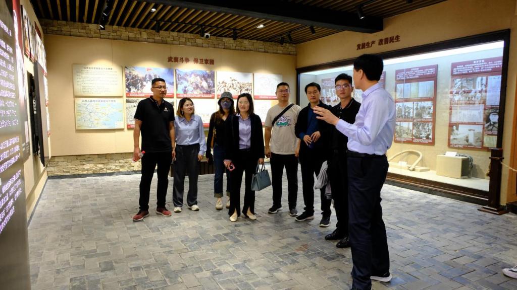 在孟良崮战役纪念馆,党员同志们瞻仰了烈士英名塔和粟裕将军墓,在范瑞红同志的带领下,重温入党誓词。党员们通过聆听讲解、观看图片和实物等形式,深入了解了孟良崮战役全过程及战役背后的故事和人物,真切感受了沂蒙人民踊跃支前、可歌可泣的英雄壮举,感悟到革命战士抛头颅、洒热血,不怕艰难困苦、不怕流血牺牲,前赴后继的革命精神。