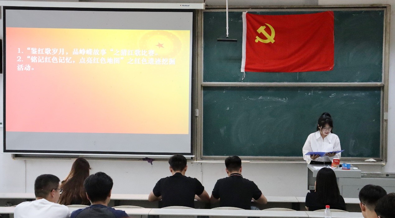 本次主题党日活动包括猜红歌比赛、红色遗迹挖掘活动、“建设具有强大凝聚力和引领力的社会主义意识形态”集中理论学习三部分。首先,活动进行“鉴红歌岁月,品峥嵘故事”之猜红歌比赛,党员同志们认真聆听红色歌曲,感悟党的光辉历史,体会其中蕴含的时代强音。随后开展“铭记红色记忆,点亮红色地图”之红色遗迹挖掘活动,孙冠楠、韩菲等同志分享了家乡的红色旧址、遗迹等,讲述本土党史和峥嵘岁月,分享镌刻着铭记于人心的红色记忆,点亮“红色地图”。最后,武玉龙带领党员同志开展了“建设具有强大凝聚力和引领力的社会主义意识形态”集中理论学习。武玉龙强调全体党员要切实加强理论学习,认真学习宣传习近平新时代中国特色社会主义思想,坚定理想信念,永远跟党走,不忘初心,牢记奋斗目标,为祖国社会主义事业建设添砖加瓦。