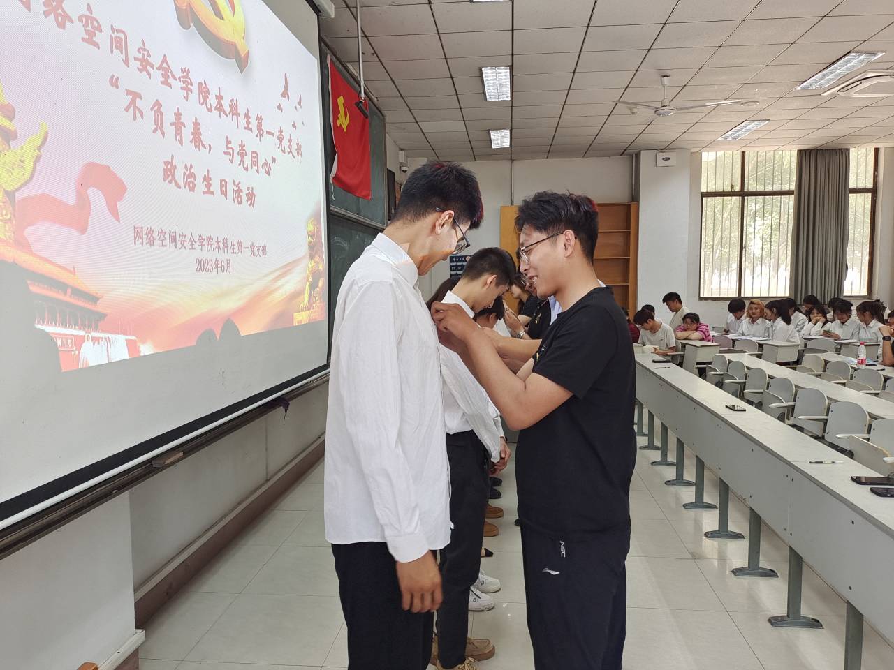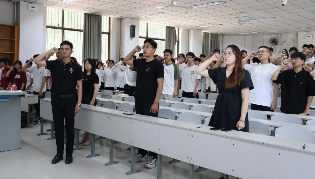 各本科生党支部在综合楼开展“不负青春,与党同行”政治生日和重温入党誓词活动。各本科生党支部全体党员同志参加了活动。