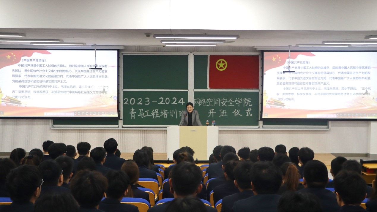 于致知楼B101教室开展了“坚定理想信念、勇于挺膺担当”入党启蒙教育讲座。学院党委副书记范瑞红出席并担任主讲人,团委书记丁允念、辅导员相青、赵兴卯及全体“青马工程”大学生骨干培训班成员参与本次会议。