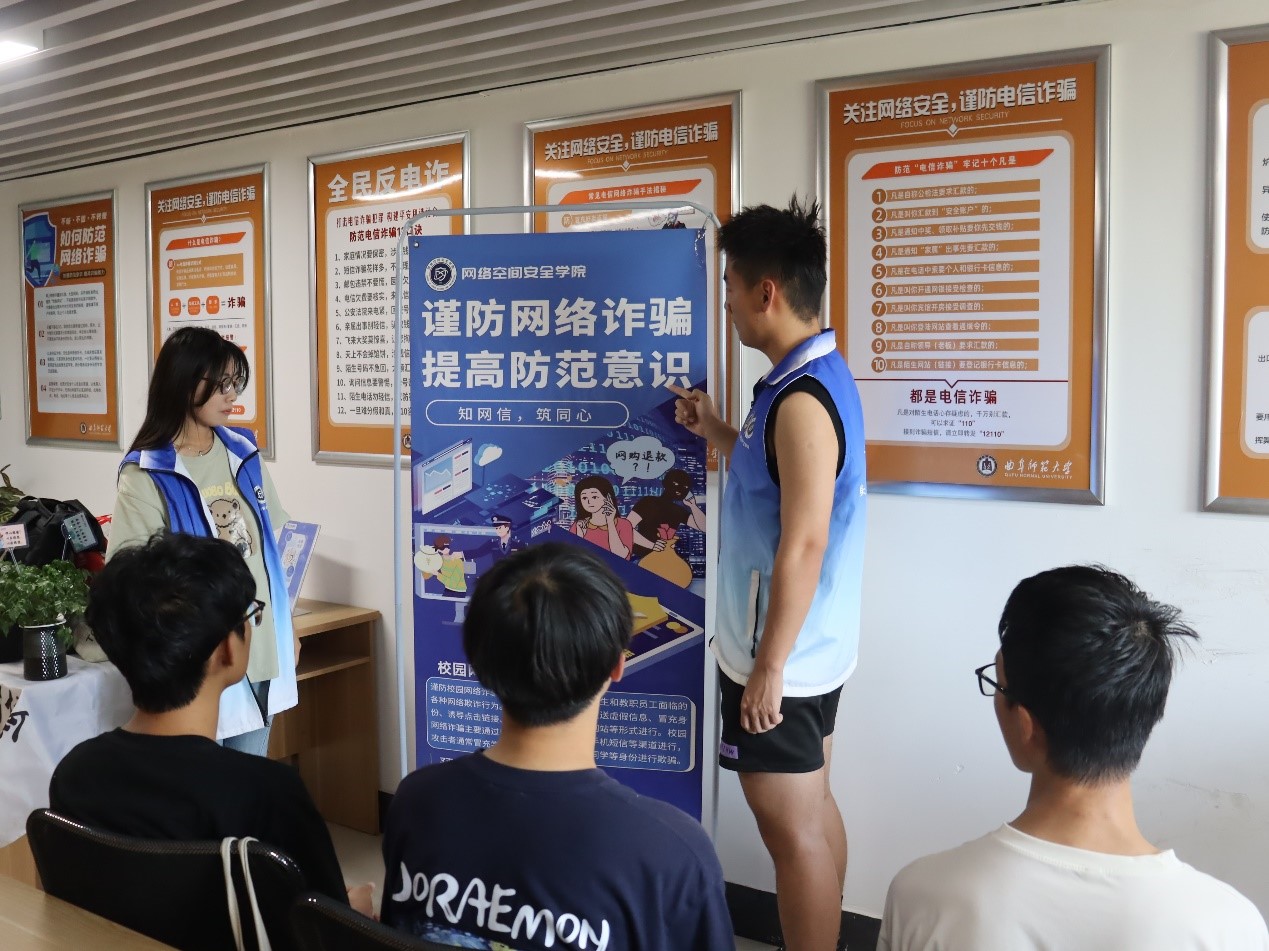 本科生党支部党员志愿者于西校区三号楼“一站式”学生社区开展网络诈骗防范宣讲志愿服务活动,学生会网络部、计算机爱好者协会志愿者一同参加此次活动。