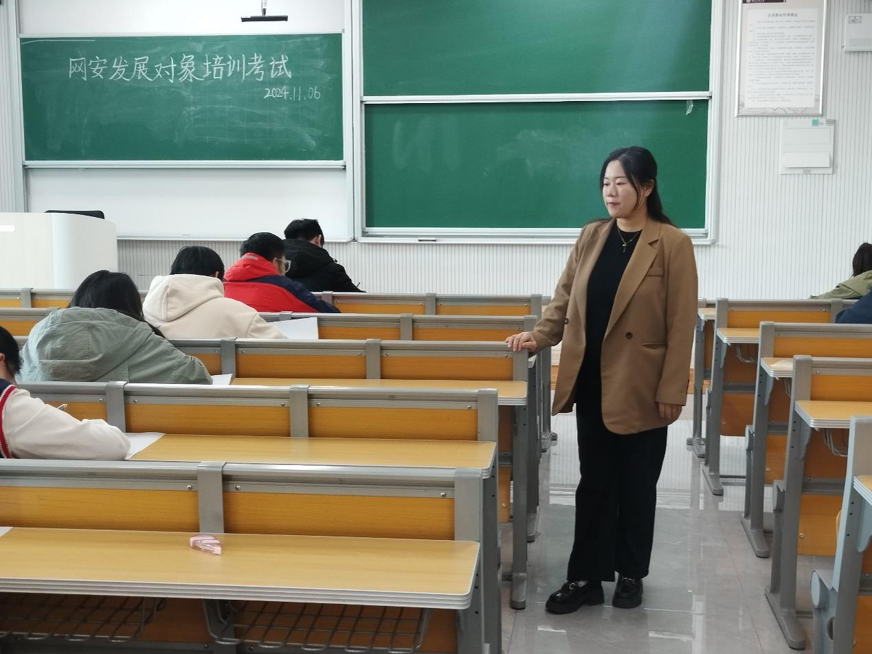 党员发展对象培训结业考试于格物楼B111教室进行,由辅导员洪亚玲担任监考老师。