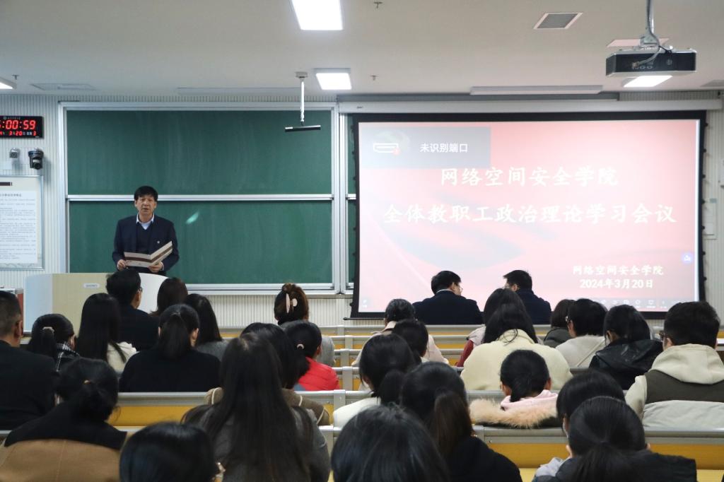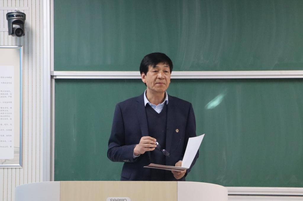 于格物楼B215教室召开全体教职工政治理论学习会议。学院党委书记田云飞,院长王茂励,党委副书记范瑞红,副院长马旭以及全体教职工参会。田云飞主持会议。