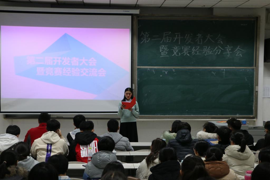 11月30日晚,软件学院团委学生会科创部成功举办“第二届开发者大会暨竞赛经验分享会”,科创部部长刘帅及三位在软件设计大赛中取得优异成绩的同学为同学们进行经验交流,软件学院各年级学生积极参加。