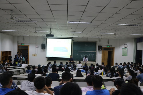 英谷教育研发部经理宋国强介绍了软件的含义,让同学们对软件有了一些专业的认识,宋老师表示软件外包两个方向在专业课程设置上并没有太大差异,只是学习的语言侧重点不同,就业推荐方向不同。他同时分析了软件外包专业的就业前景,让同学们对自己将来的就业环境有了更深入的了解。对于同学们所提出的问题,宋老师热情耐心地进行了解答,宣讲会现场气氛活跃。