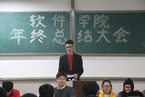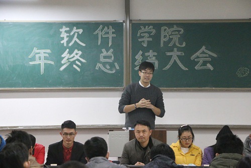 2015年12月25日下午五点,软件学院年终工作总结大会在西联教室一顺利召开。软件学院团总支书记杨正运,辅导员单天罡、学生会主席团及各部长出席本次会议。