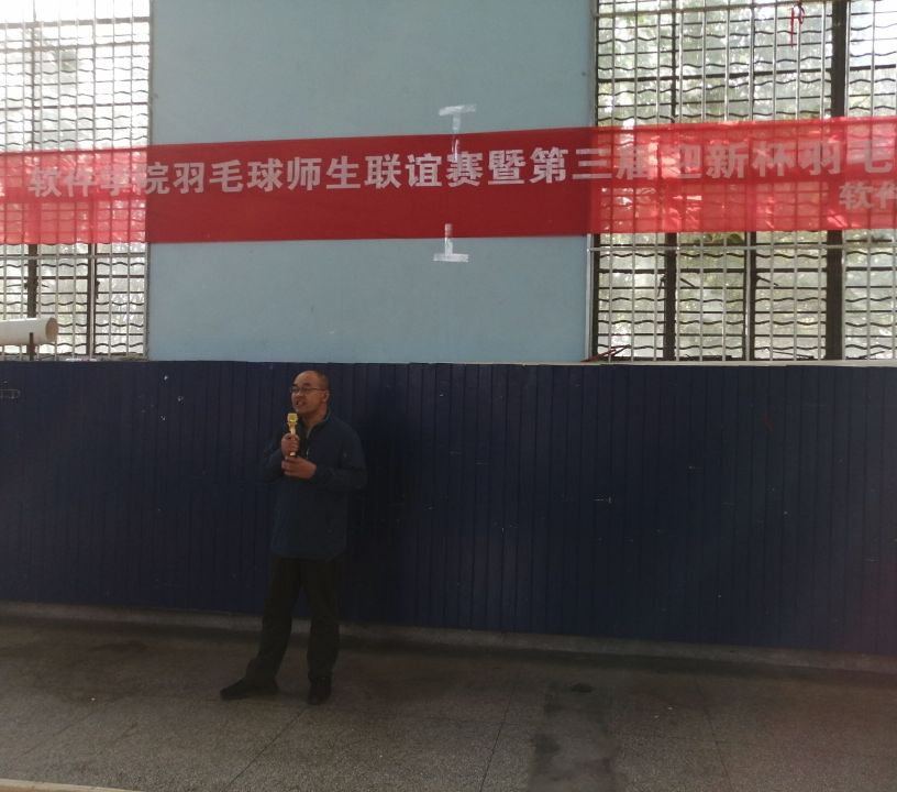 10月26日,软件学院羽毛球师生联谊赛暨第三届“迎新杯”羽毛球赛在体育科学学院羽毛球馆成功举办。软件学院教师代表王玉田老师,谢兆贤老师,李桂青老师及19级参赛选手出席开幕仪式。王玉田老师致开幕词并预祝比赛圆满成功。