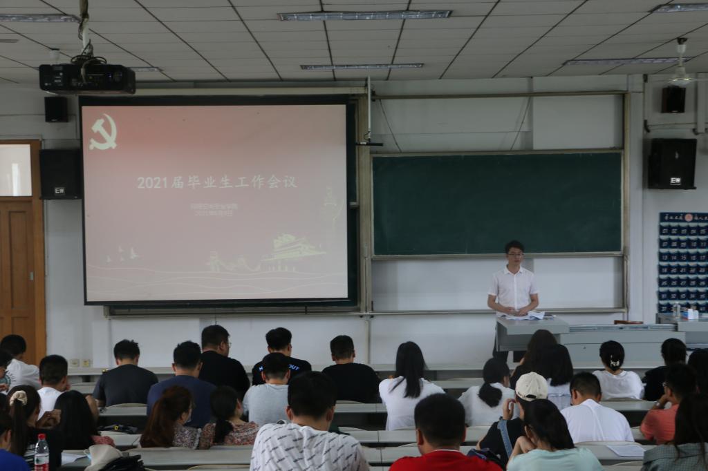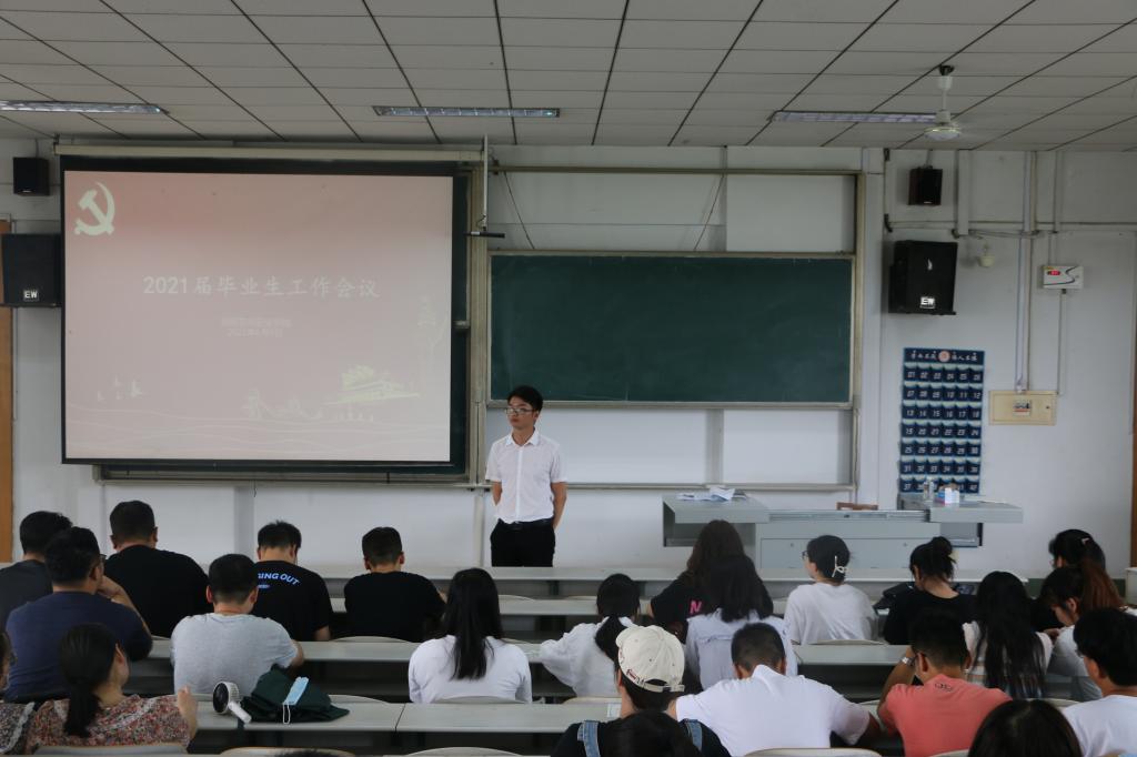 在综合楼501召开2021届毕业生工作会议,本次会议由辅导员丁允念主持,17级全体毕业生参与此次会议。