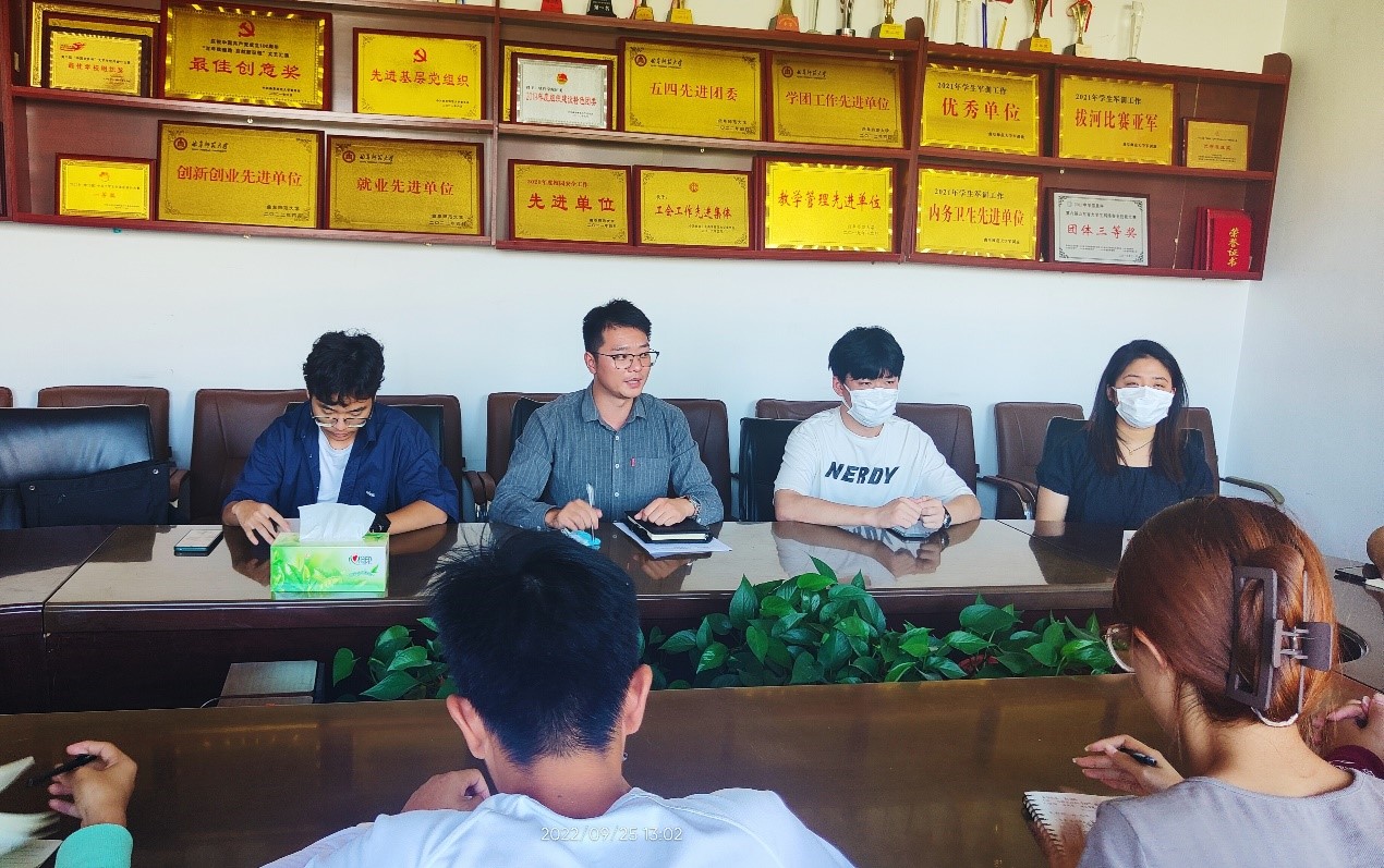 会议伊始,丁允念就国庆假期安排、上课作息时间调整、综合测评成绩计算、家庭经济困难学生认定及学生安全工作等七个方面进行了阐述。首先,丁允念传达了学校的国庆节期间的教学安排和作息时间调整等信息,国庆期间全体学生应做到非必要不离开驻地,学生干部需做好班级同学的思想引导工作。同时,他还强调了综合测评成绩的计算务必做到公平、公正、公开,计算完成后需公示至少三天时间。最后,丁允念以学生安全问题为结尾,强调安全是一切工作的基础,学生干部要告诫班级同学牢固树立安全第一的思想,积极关注班级同学的心理健康问题;同时,他还强调宿舍内禁止使用违规电器、管制刀具等具有安全隐患的设施,学生干部还要提醒班级同学增强安全防范意识,做一个文明守纪的新时代大学生。