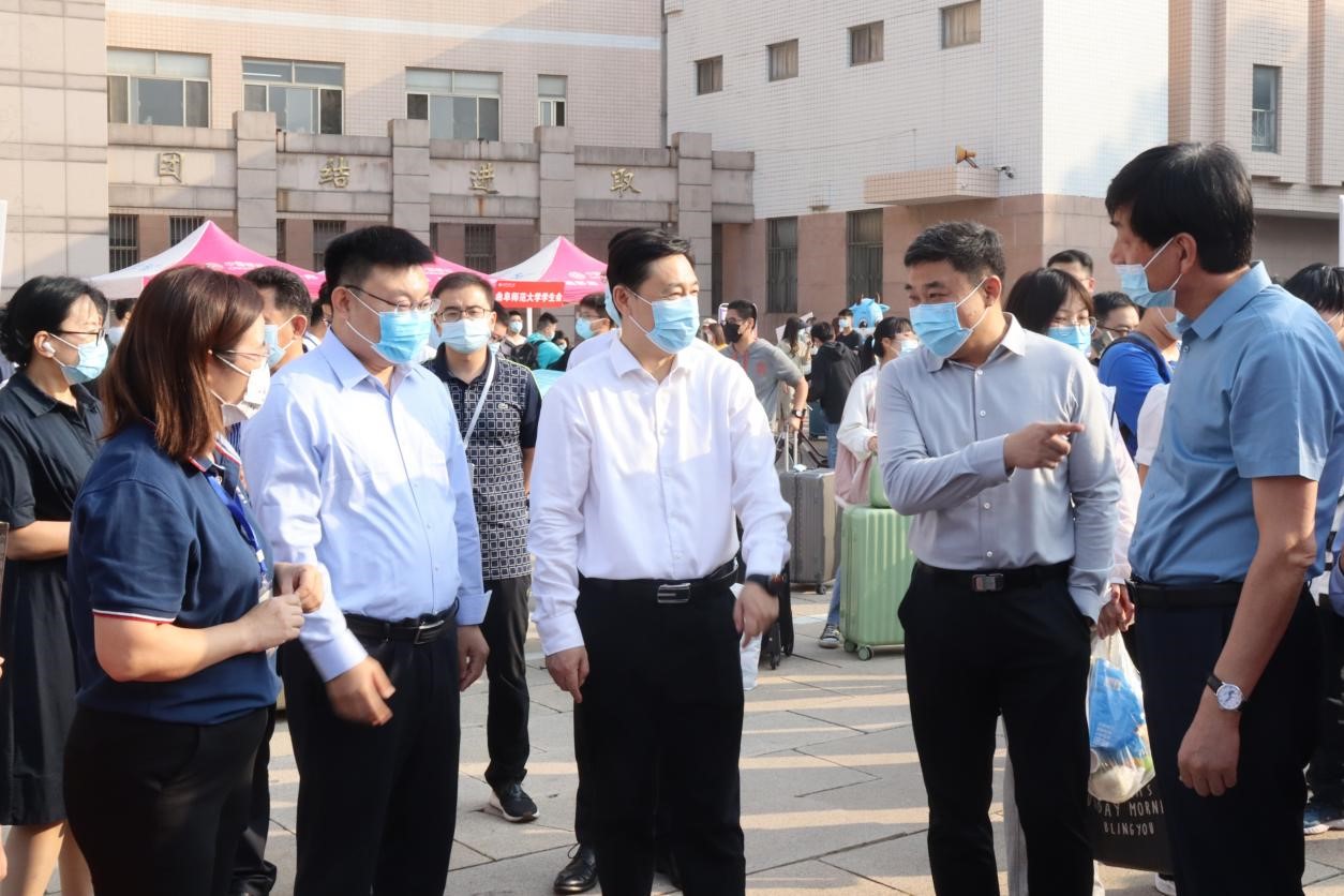 迎新工作顺利开展。学院党委书记田云飞,院长王茂励,党委副书记范瑞红带领团委书记丁允念,辅导员相青、洪亚玲、于媚媛、武玉龙、李扬,亲临迎新现场指导视察工作,并慰问2022级新生。