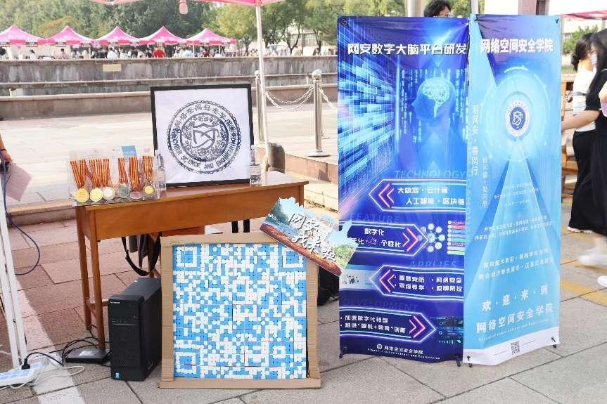 联合下设各个社团以独具特色方式来欢迎新生报到:展现软件类学科和电子类学科专业特点的由代码和嵌入的电路板制作的展板、由魔方社团通过魔方拼接制作而成的二维码、剪纸社团用精巧的双手剪刻出的院徽……各式各样的展品为迎新工作增光添彩,展现了学院积极向上,朝气蓬勃的精神面貌,赢得新生的一致好评。