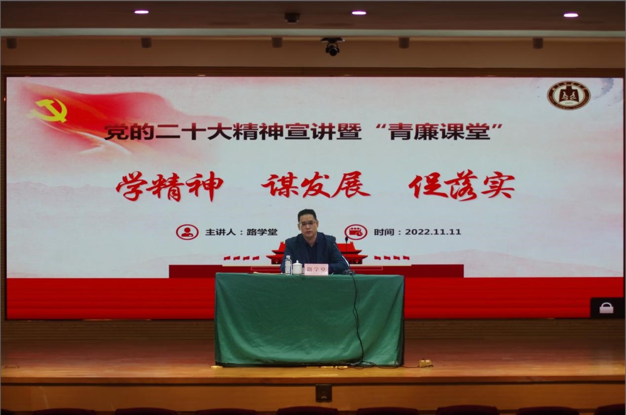 院讯(通讯员:武玉龙 郑加强 摄影:崔城豪)11月11日上午,学校纪委在孔子会堂举办学习贯彻党的二十大精神宣讲报告会暨“青廉课堂”第二课。学校党委常委、纪委书记、省监委驻校监察专员路学堂作宣讲报告,纪委副书记苏斌主持报告会。动漫疯
