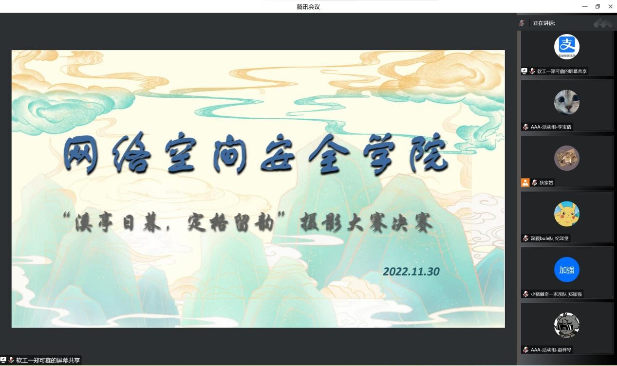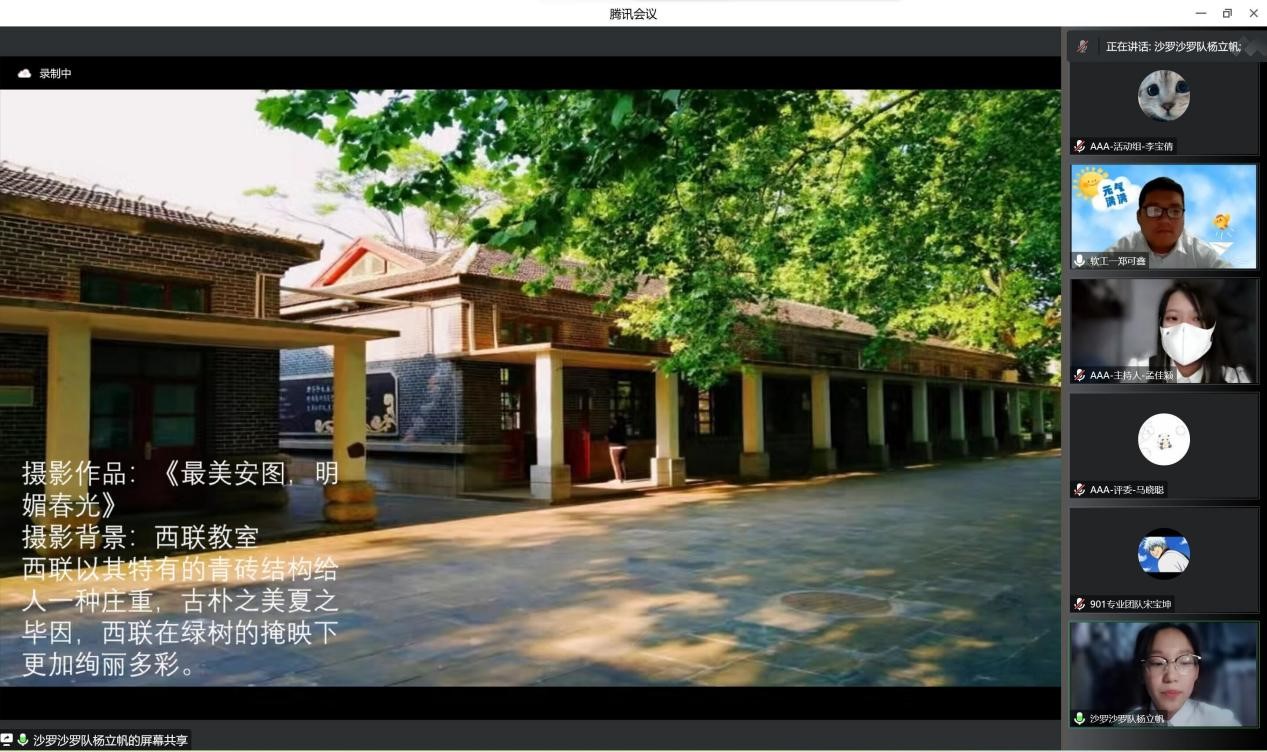此次活动包括初赛和决赛两个环节。经过初赛选拔,16支参赛队伍顺利进入决赛。决赛分为线上投票和线上宣讲部分。决赛评分标准分为作品内容、语言表达、仪容仪表、创新性四部分。16支队伍依次进行宣讲,用高超的摄影技术配以制作精美的PPT和婉转动人的解说,展现出一卷卷如诗如画的曲园景色图。经过评比,比赛决出一等奖2名,二等奖5名,三等奖6名。