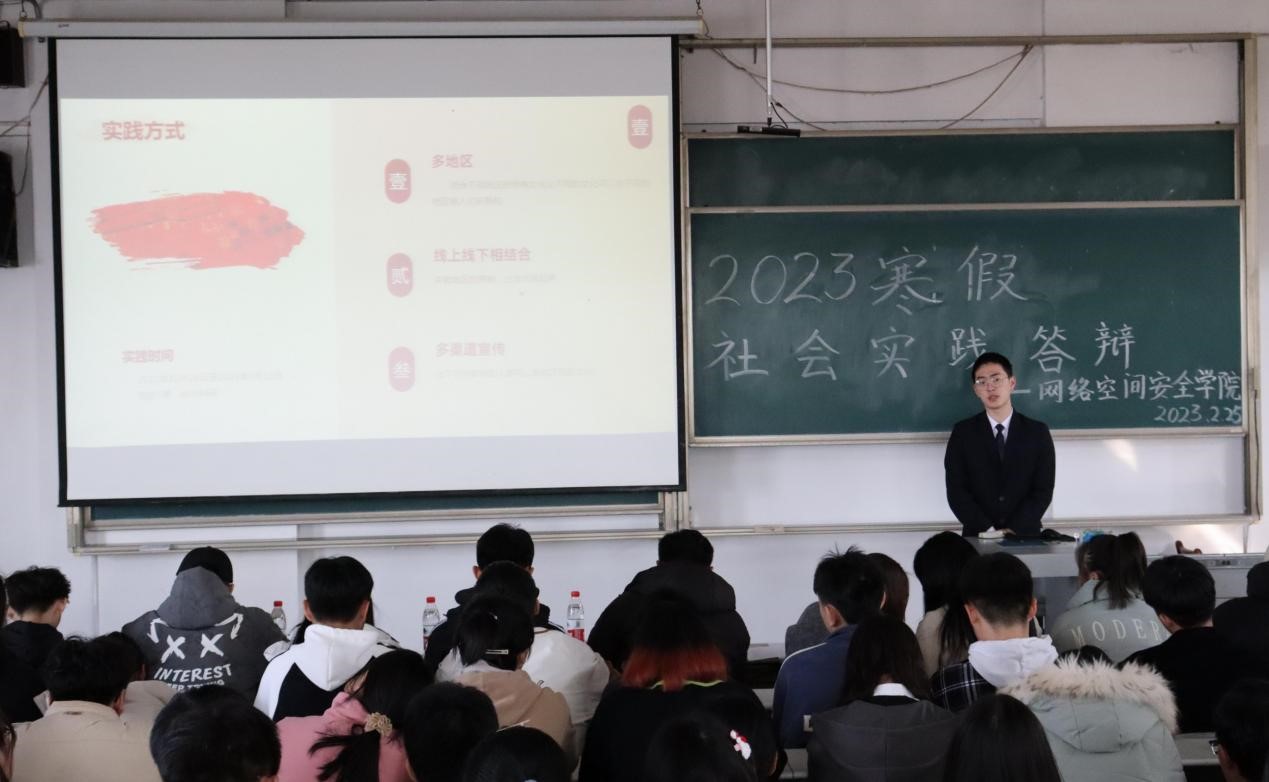 2023年寒假社会实践答辩会于综合楼606教室顺利举行。学院辅导员相青、赵兴卯及学生会主席团出席活动并担任评委,社会实践队伍学生代表参加此次答辩会。