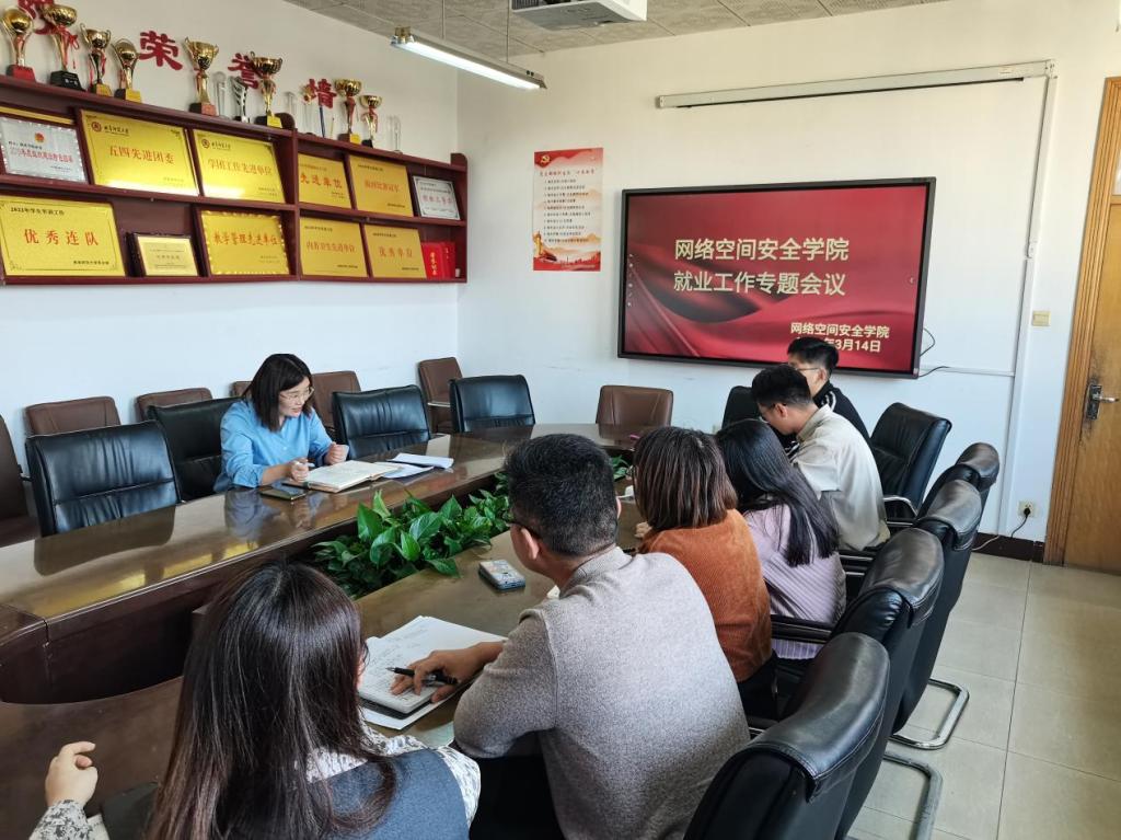 就业工作专题会议于学院410会议室召开。学院党委副书记范瑞红主持会议,团委书记丁允念,辅导员洪亚玲、武玉龙、相青、于媚媛、赵兴卯参加会议。