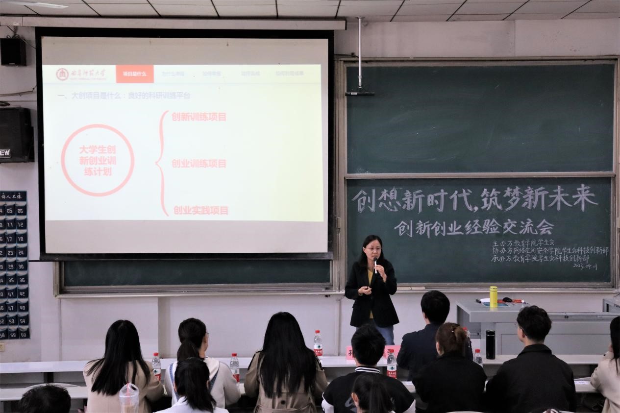 同教育学院于综合楼教学楼706联合举办了“创想新时代,筑梦新未来”创新创业经验交流会。教育学院党委副书记孙超、辅导员张东霞、教师孙丽芝,动漫疯
