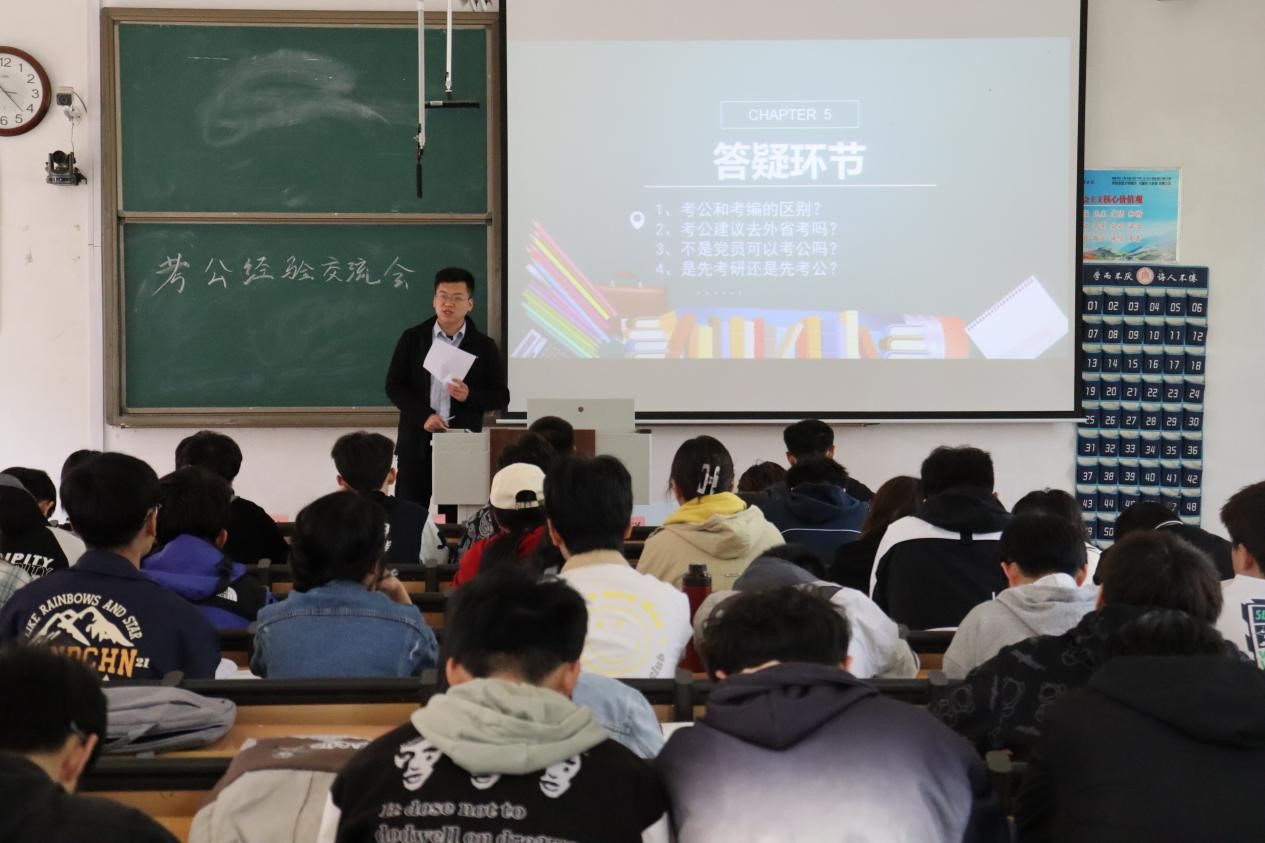 院讯(通讯员:赵兴卯 王瑞相 摄影:赵梓岑)为促进学生深入了解考公的相关事项、解答考公疑虑,4月9日上午,动漫疯