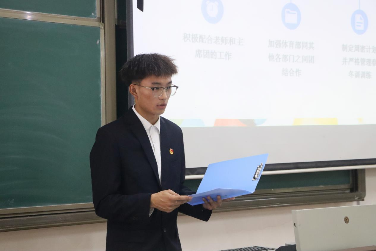 第九届团委学生会部长换届竞选于西联教室举行。学院团委副书记丁允念,辅导员洪亚玲、武玉龙、于媚媛、相青、赵兴卯、团委学生会主席团与各部门部长参加并担任评委。
