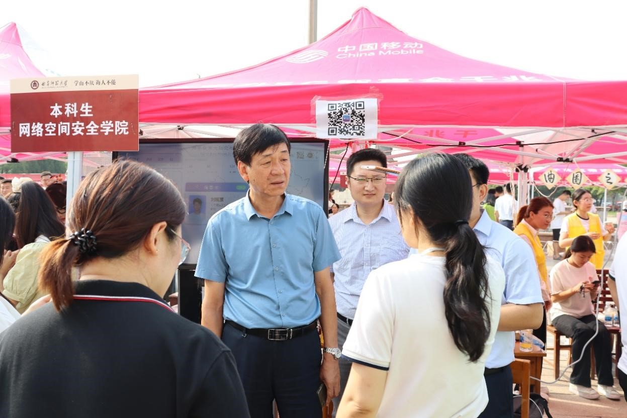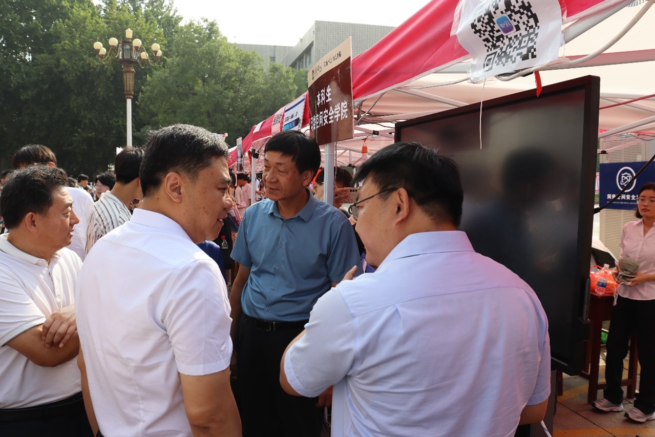 9号上午,学校党委书记邢光、党委副书记卢国强等一行领导莅临学院迎新点视察迎新工作,王茂励介绍了动漫疯
