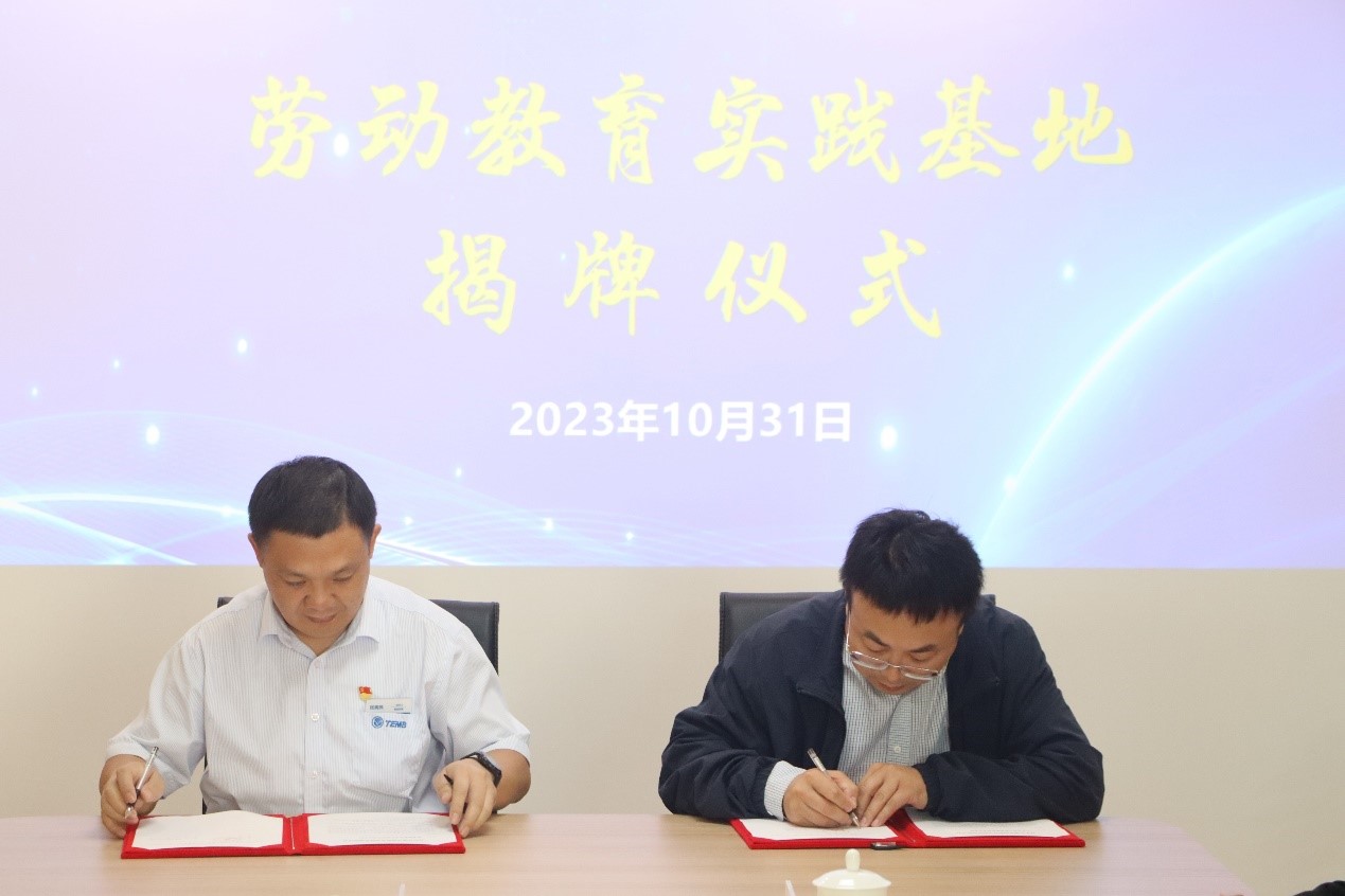 与曲阜天博汽车零部件制造有限公司、曲阜天科电动科技有限公司、山东圣阳电源股份有限公司等企业签署三方合作协议,共建劳动教育实践基地。曲阜市科学技术局党组书记王文函,曲阜天博汽车零部件制造有限公司党委副书记、副总经理张宪伟,山东圣阳电源股份有限公司研究院院长马建平,学院党委书记田云飞、学院办公室主任夏全喜等人出席挂牌签约仪式。