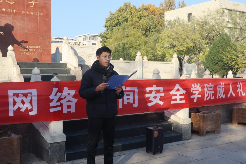 2023级成人礼活动于孔子文化广场顺利举行。学院辅导员洪亚玲,赵兴卯出席活动,2023级年满十八周岁学生参加活动。