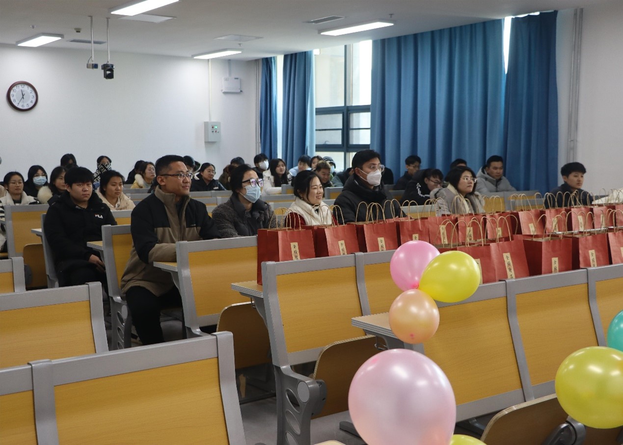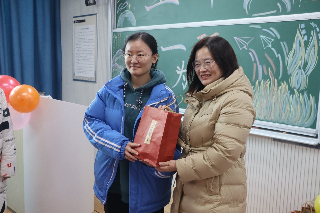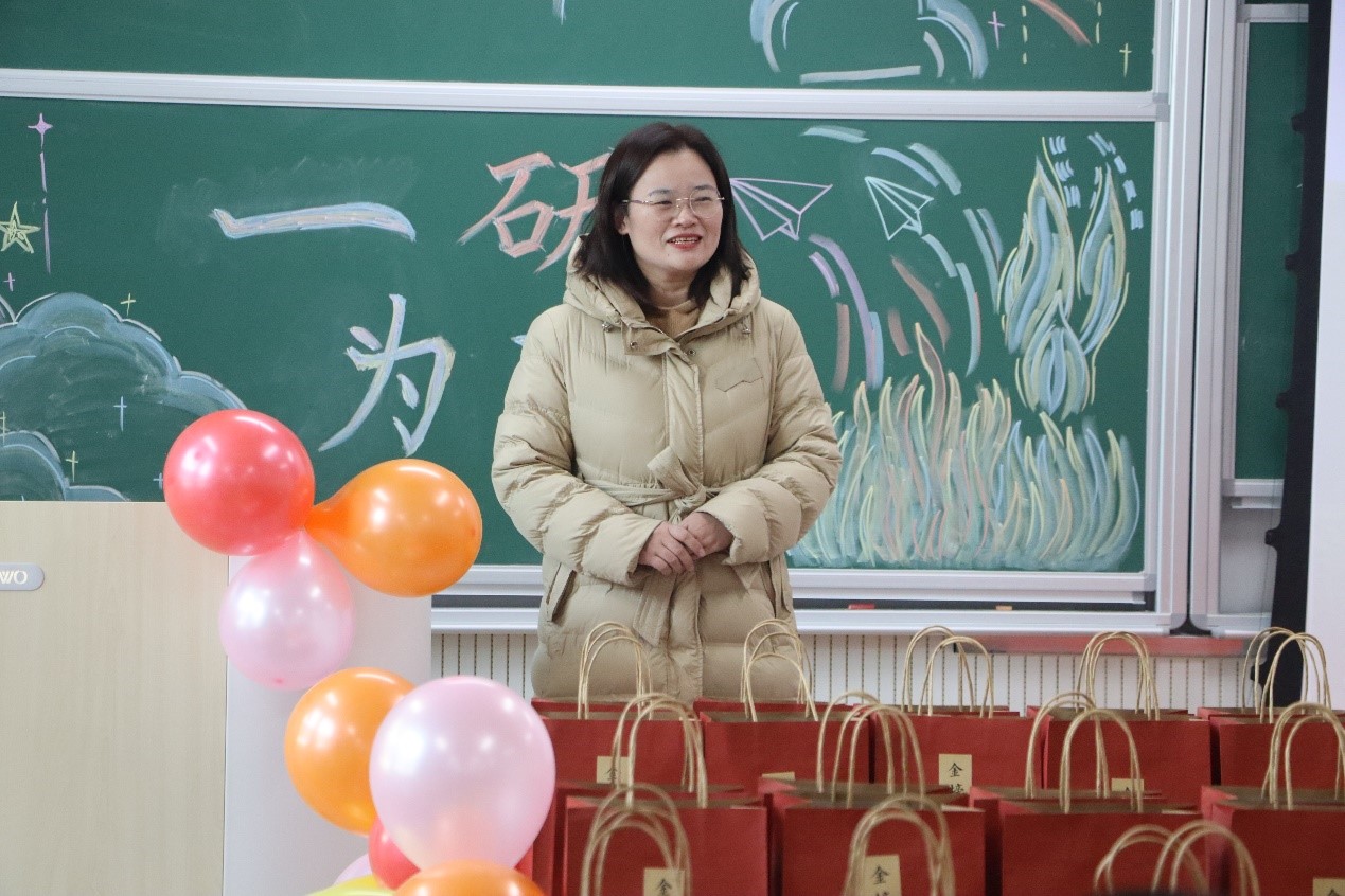 活动伊始,范瑞红向考研学子表达了慰问,极大肯定了同学们刻苦学习的精神,并提醒同学们在最后的冲刺阶段劳逸结合,调整心态,从容面对考试。同时,随后范瑞红及辅导员老师们为大家送上精心准备的考研福袋,以一举“橙”功的橙子和寓意着好运“旺旺”的牛奶作为加油小礼包,为考研同学送上关心关爱和加油鼓励。最后,辅导员们与同学们进行合影留念,并祝福考研学子一战成“硕”,金榜题名。