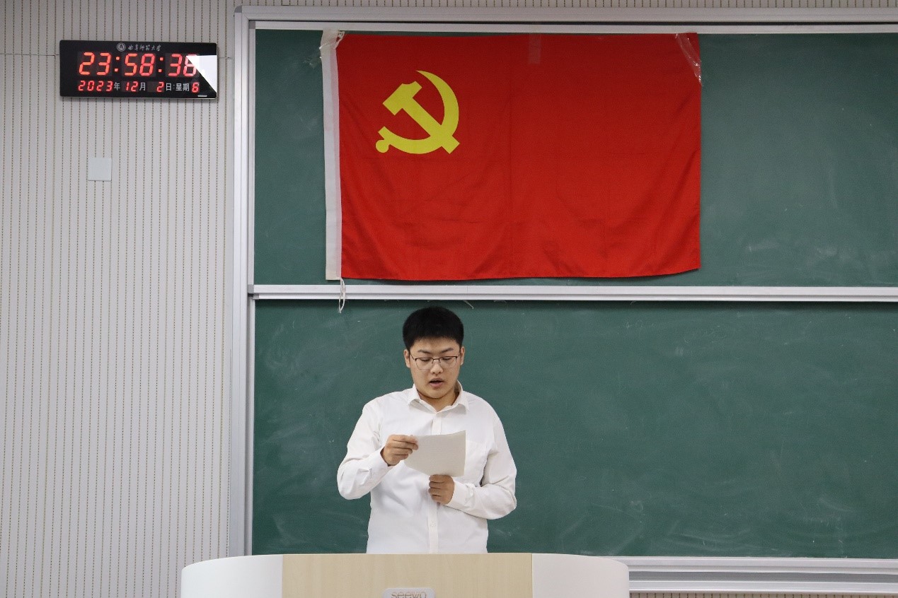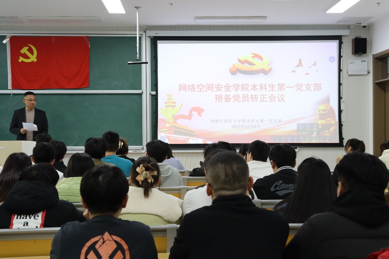 本科生党支部预备党员转正会议于格物楼B106教室召开,本科生党支部书记武玉龙主持会议,党委副书记范瑞红,本科生党支部全体教师党员和学生党员参加会议。