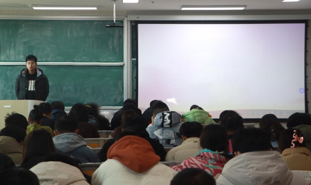 征兵公益宣传片观影活动于综合楼105组织开展。学院辅导员赵兴卯主持, 学院2023届毕业生和其他年级学生代表参与。