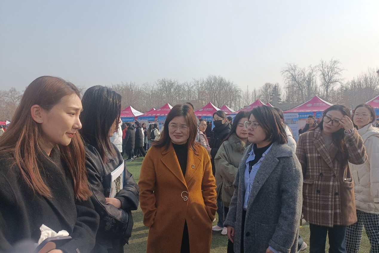 专场招聘活动。学院党委书记田云飞、院长王茂励、党委副书记范瑞红以及全体辅导员前往现场走访用人单位,了解当前企业需求和学生的应聘情况。