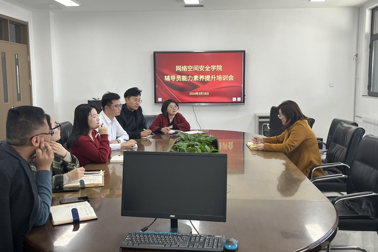 于格物楼A504会议室召开辅导员能力素养提升培训会,学院党委副书记范瑞红主持会议,全体辅导员参加学习。