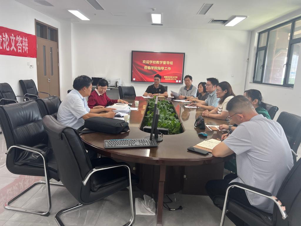 学业预警工作后给出了高度肯定,他强调,学生学业预警工作要全员参与,形成全员全方位育人合力,严格按照规定筛选学业预警学生名单,辅导员和班主任要积极开展预警学生谈话和帮助预警学生进行学业生涯规划等工作,尽早帮助学生查找问题、解决问题。苗深花表示,学院要结合实际,认真贯彻执行《全日制本科生学业预警管理办法》,推进本科生学习过程动态管理,帮助学生顺利完成学业,进一步提高人才培养质量。会议最后,范瑞红对指导组的辛勤付出表示衷心感谢,并表示将以此次指导为契机,学院将进一步提高对《办法》的理解程度和执行力度,努力确保每一位学生都能顺利毕业。