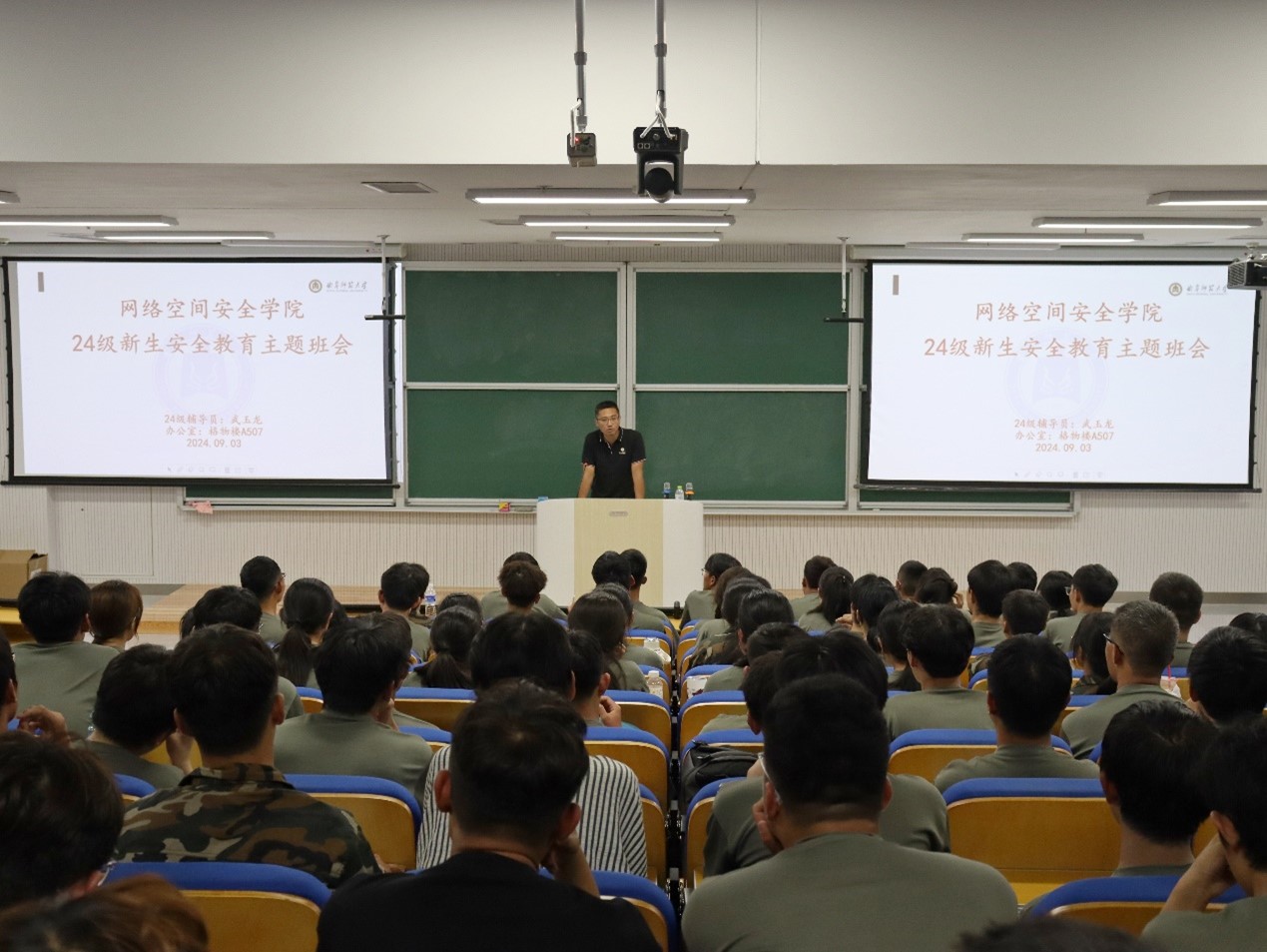 2024级安全教育主题班会于致知楼B101、B201召开,辅导员武玉龙主持会议,学院2024级全体新生参加会议。