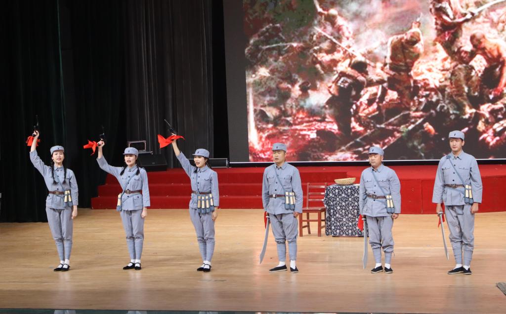 在新生的沉思与期待中,由台儿庄战役纪念馆带来的三个原创歌剧表演分别从亲情、爱情、战友情三方面重现了战时场景。未曾见过父亲的英雄子女、再也等不到心上人归来的烈士未婚妻、精诚团结的战友,歌剧将抗战的心酸和与悲痛浓缩在一起,展示了贯彻整个时代的民族责任与使命,呈现了先烈们在国家命运和民族大义面前所展现出的大局为重、勇于牺牲的崇高革命精神。