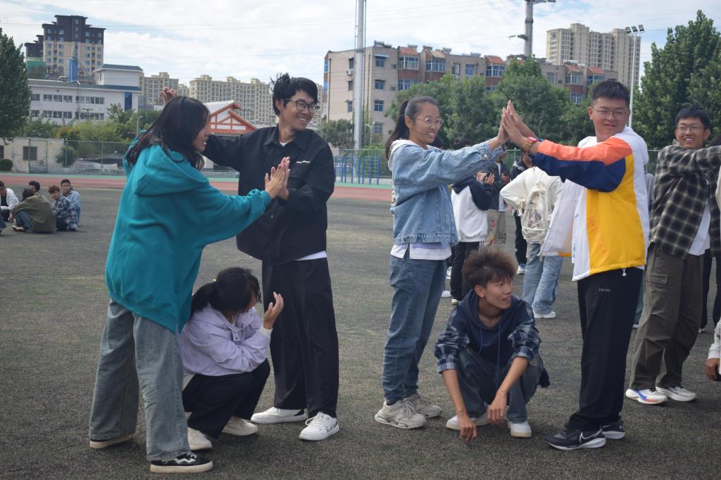 本次活动在轻松愉快的氛围中拉开序幕。主持人通过引导新生们积极参与“新朋友面对面”的游戏迅速破冰,消除了新生们之间的陌生感。在活动过程中,同学们围坐成一个个小组,进行了“水果炸弹”、“大树与松鼠”等团建游戏。新生们积极参与,踊跃展现个人才艺,这极大地提升了活动的互动性和趣味性,同时也加速了大家融入新集体的步伐。操场上空回荡着阵阵掌声与欢声笑语,洋溢着青春与活力的气息。活动最后,同学们主动分享了自己的感受和收获,主持人也耐心解答了新生们在大学生活中可能遇到的各种问题。