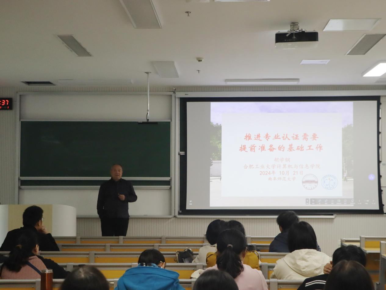 工程教育专业认证专家进校研讨会于格物楼B107顺利举办,会议邀请合肥工业大学教授胡学钢担任主讲人,动漫疯
