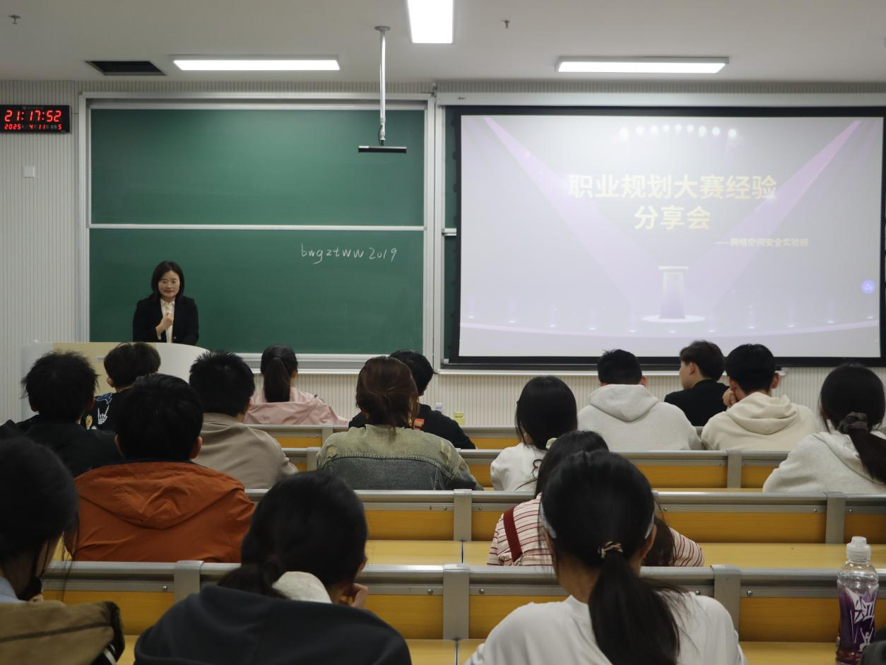 职业规划大赛经验分享会于格物楼B107教室召开。学院党委副书记范瑞红、职业规划大赛省赛获奖者杨福成、校赛获奖者赵润欣及实验班全体同学参加活动。