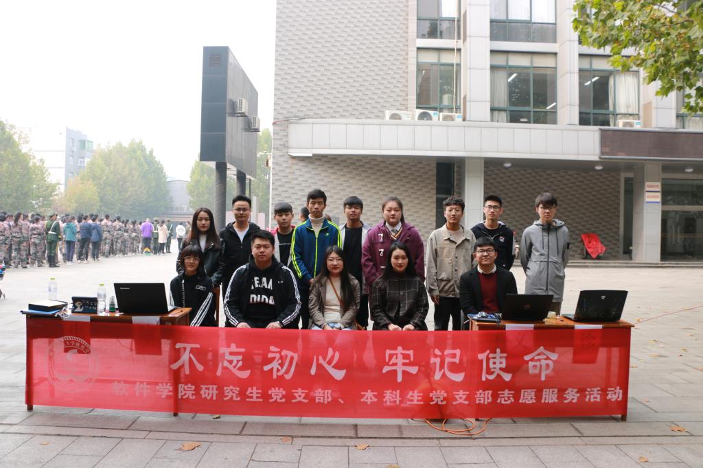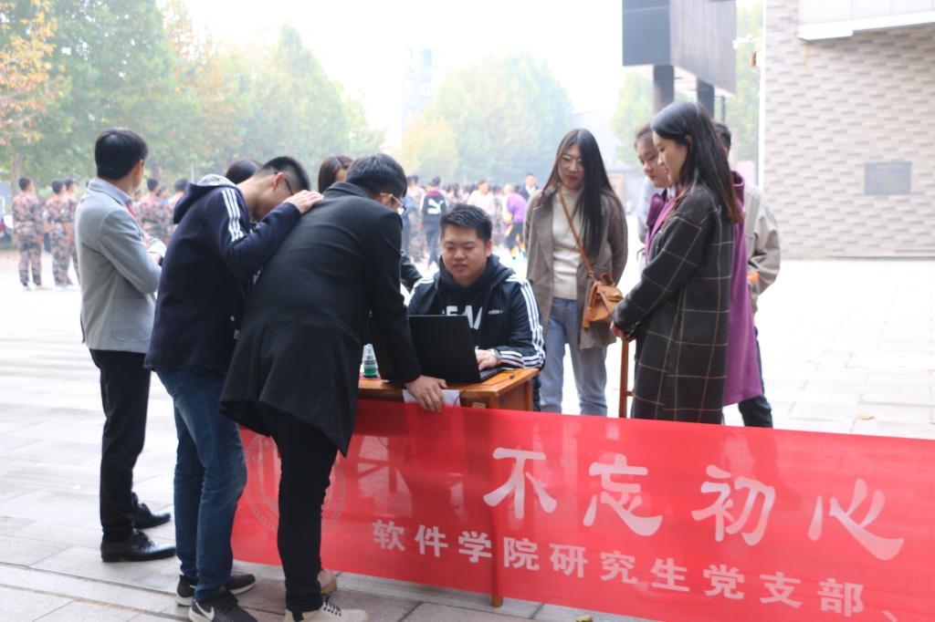 11月3日上午,为贯彻“不忘初心、牢记使命”主题教育方针,软件学院研究生党支部和本科生党支部在大学生活动中心前顺利开展了电脑义诊志愿服务活动。