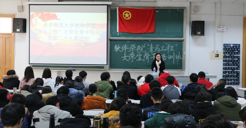 2019“青马工程”软件学院培训班暨第二十九期团校课程第五讲在综合楼201教室开讲,软件学院团委书记范瑞红主讲,软件学院2019级学生干部参加。