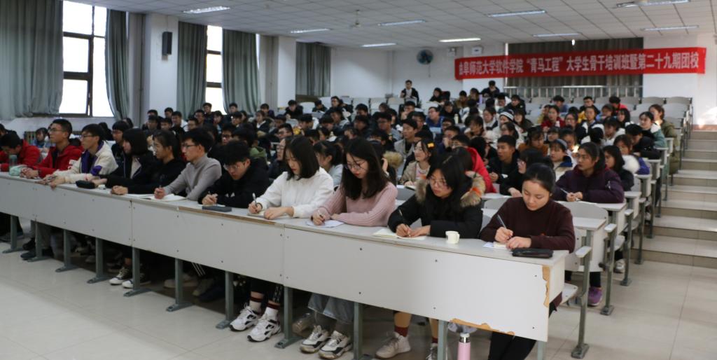 12月11日下午,软件学院“青马工程”大学生骨干培训班第四期于综合楼201教室成功举办。软件学院党委副书记田凯、团委书记范瑞红及2019级软件各班学生骨干参加了此次培训活动,田凯书记主讲。