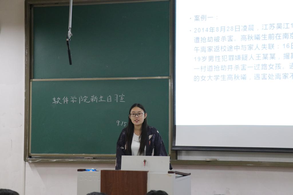 9月15日晚,软件学院新生安全与健康主题教育活动在新生晚自习教室成功举行。辅导员洪亚玲,纪检部部长谢庚雨、女生部部长康宁担任本次活动主讲,19级全体新生参加本次活动。