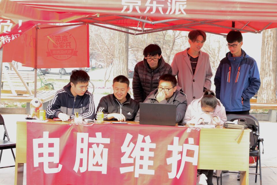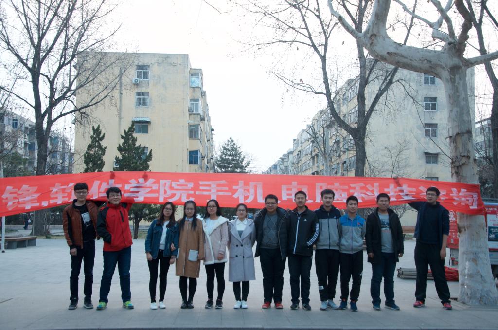 为了学习和弘扬雷锋精神,让同学们能够接触和学习到基础的电脑维修和维护知识,促进同学间交流,2017年3月11日8点到17点,软件学院社会实践部联合计算机爱好者协会与京东派在老干部楼前共同举办了电脑义诊活动,软件学院教学科研负责人倪建成、办公室主任齐邦强、团委书记杨正运、辅导员郑凤华前来视察。