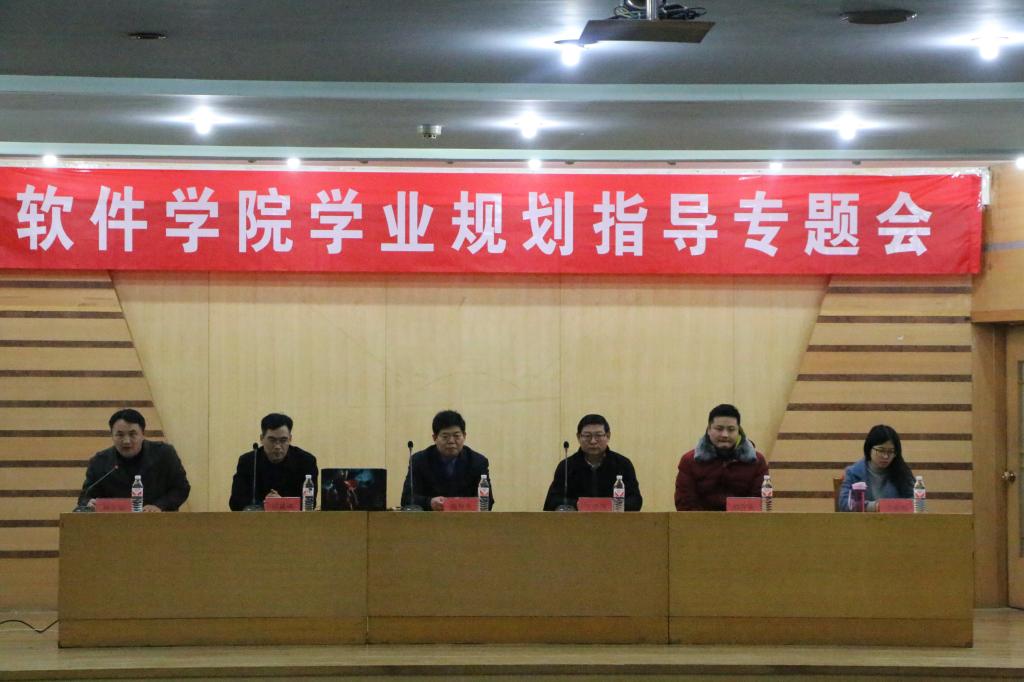 12月18日下午三点,软件学院学业规划指导专题会在孔子会堂召开。出席本次会议的有软件学院常务副院长高仲合,数学与统计学院党委副书记王作茂,软件学院教学科研负责人倪建成,软件学院团委书记杨正运,软件学院教师嵇存美、乔丽娟,辅导员郑凤华。2014级200余人参加会议。